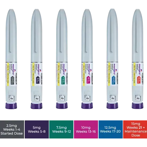 - Dosage: Treatment begins with a starting dose of 2.5 mg once weekly for four weeks. The dose can then be increased by a healthcare provider in 2.5 mg increments every four weeks, up to a maximum dose of 15 mg once weekly, to achieve the desired effect.